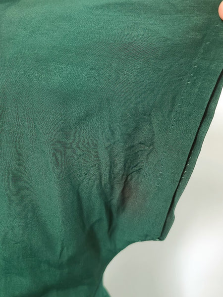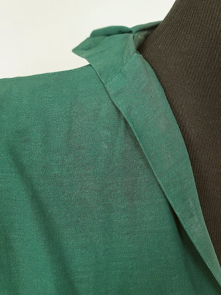 Vintage 1940s emerald green dress with flower shaped buttons.
